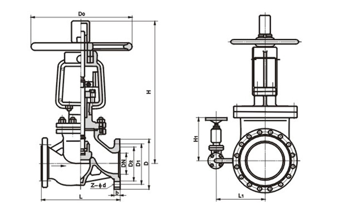 2、介質流向:PN≥1.6MPa、DN≤100介質由閥瓣下方流入閥瓣上方(即低進高出),DN≥125介質由閥瓣蔔方流入下方(高進低出)o對于DN≥125的閥門采用介質高進低出的流向,一方面足内旁通閥結構上的需要,另一方面由于介質壓力的作用使閥門的關閉力大大減小。